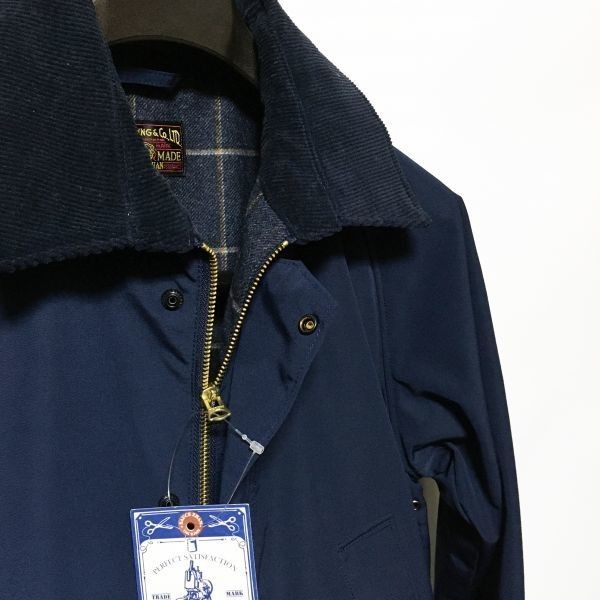 SAUCEZHANのアウタージャケットです、カラーは濃い目のネイビーになります。保存時の関係で襟のコーデュロイ部分にややアタリがありますが室内試着のみの未使用品です。