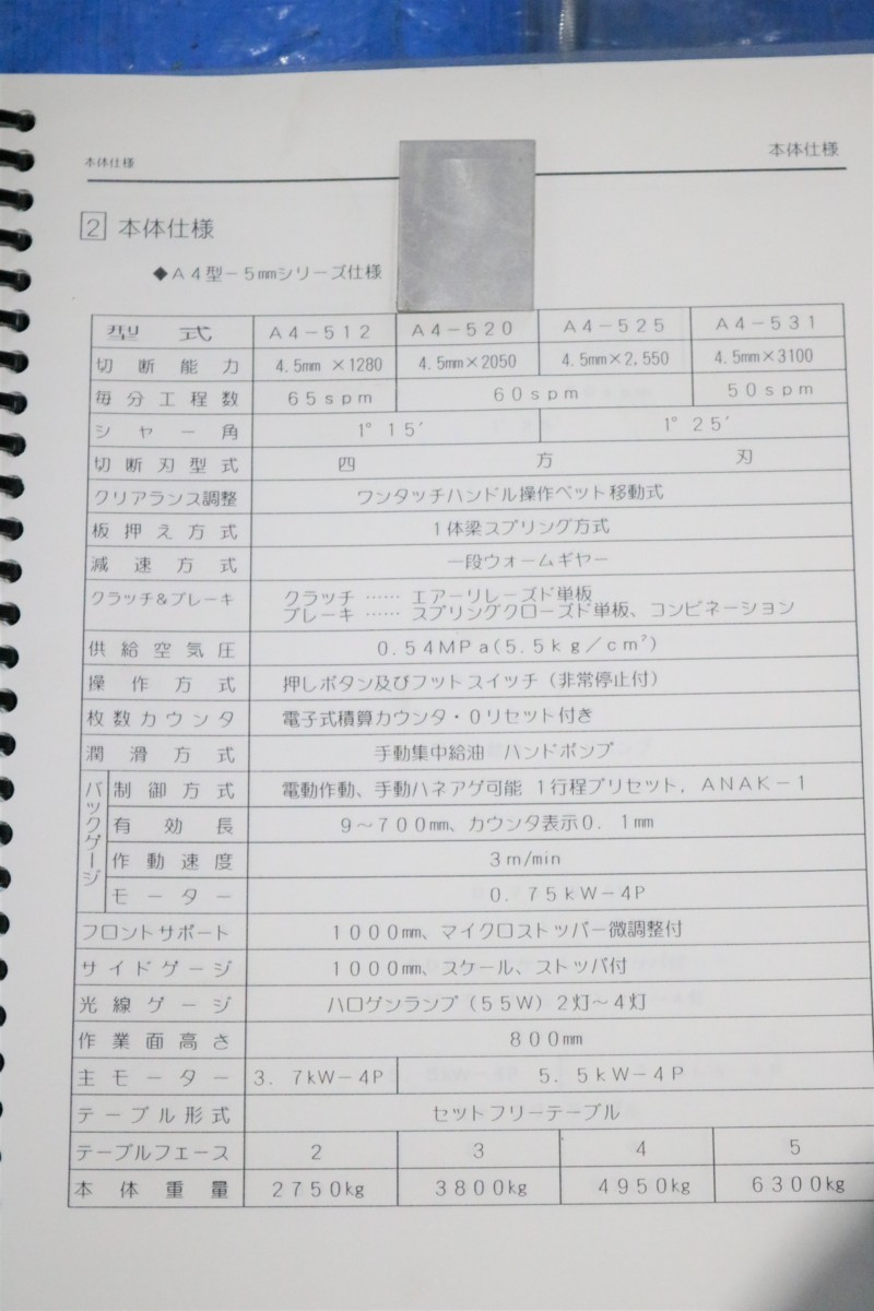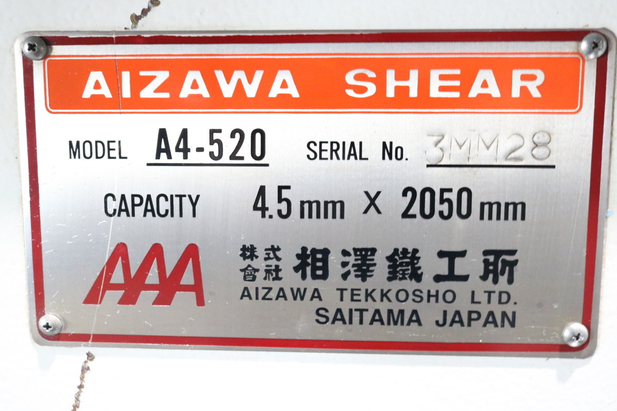 《2487-2》相澤 シャーリング A4-520 4.5mm×2.050mm 板金機械 切断機 | |||