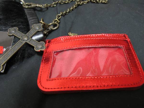 ★黒ファー斜め掛けバッグ・パスケース★Plush&Lush★十字架★