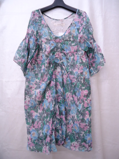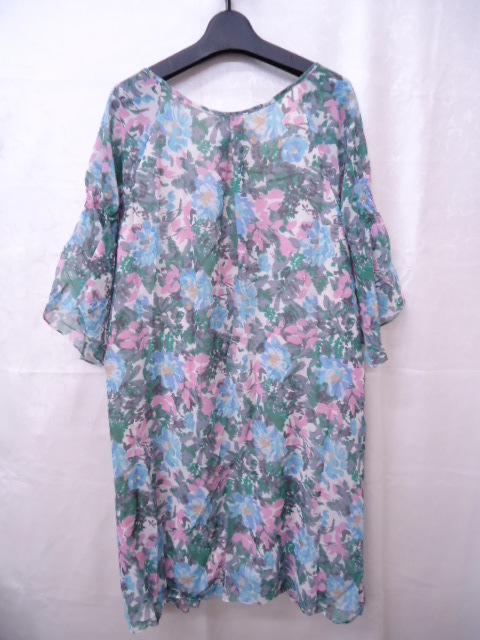レディース シフォン 花柄 半袖チュニックワンピ