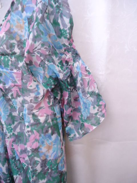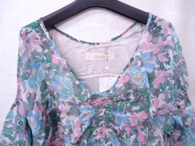 【KCM】sta-91★在庫処分品★【carlife/カーライフ】レディース シフォン 花柄 半袖チュニックワンピ ブルー/ピンク系