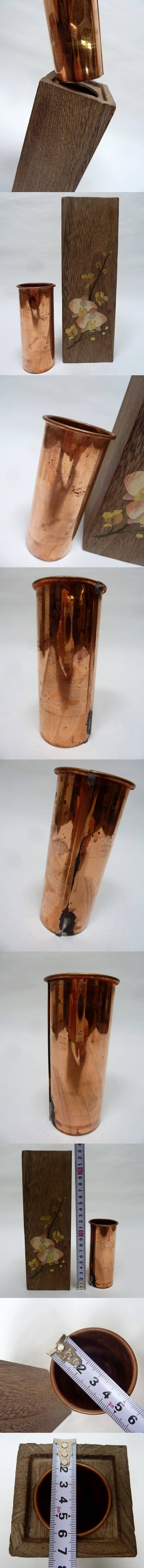(☆BM)☆[最終SALE]木製 桐 銅筒入り 花瓶 花器 高さ23㎝ 昭和レトロ 日本クラッシック 華道具 花紋 アンティーク 旧家蔵出し品