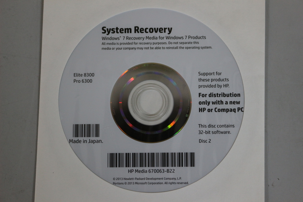中古品 HP Pro6300 Elite8300用◆リカバリディスク Window7 32bit 5枚セット 「HP04-⑯」