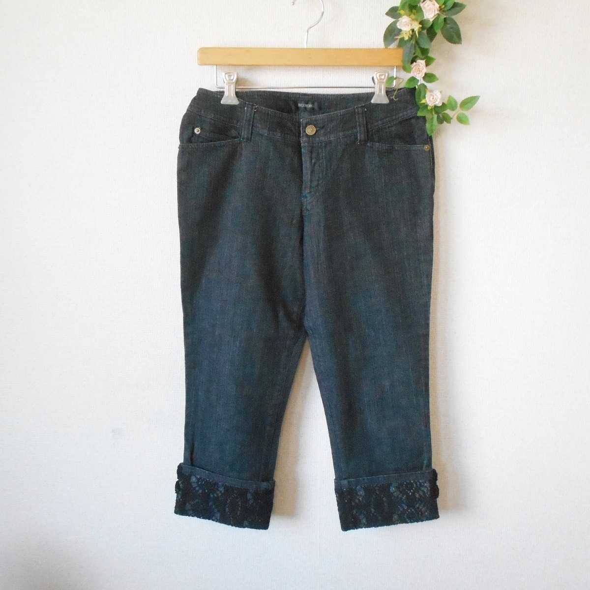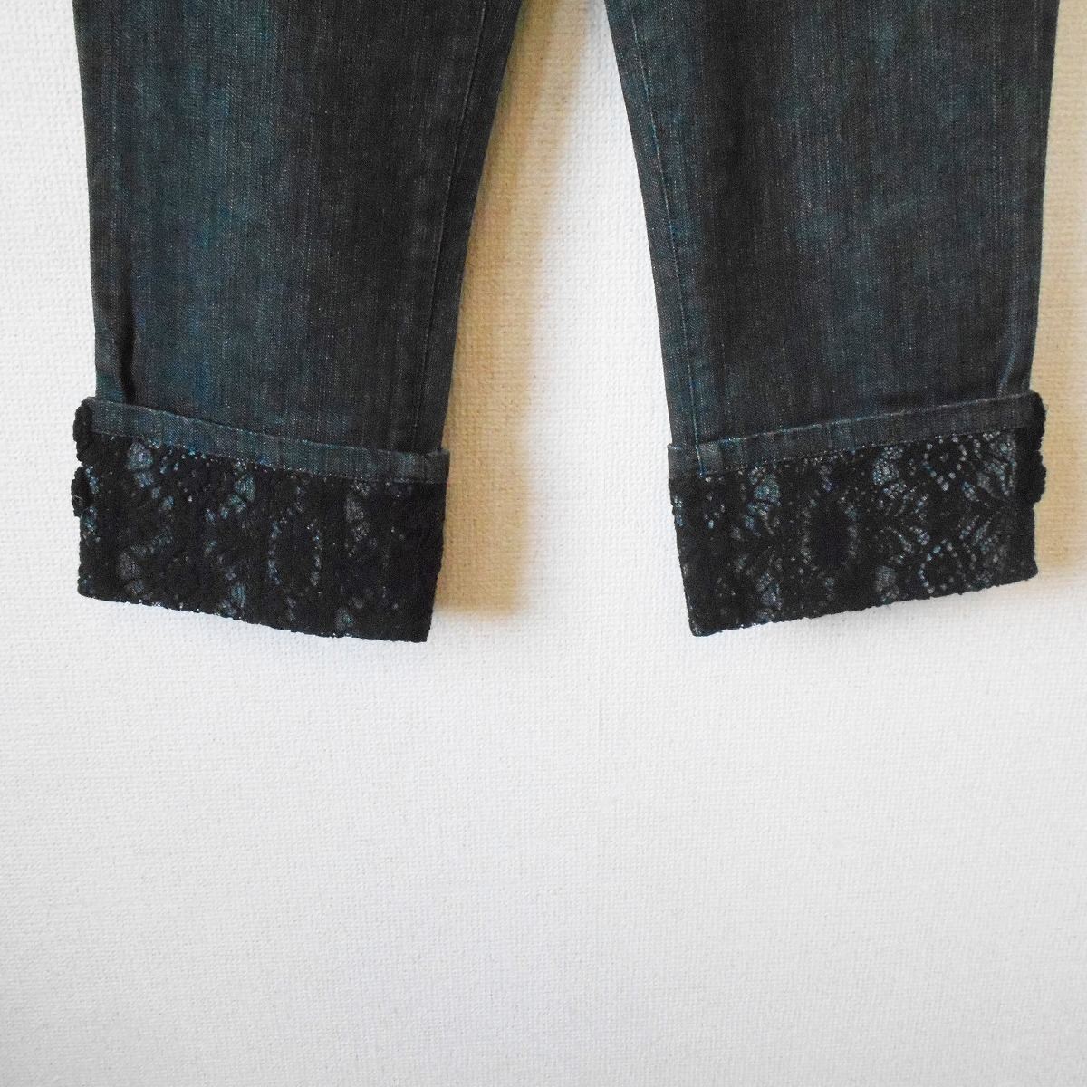 インゲボルグ INGEBORG お花 モチーフ & レース 付き レディース 用 デニム ジーンズ 日本製 黒 11