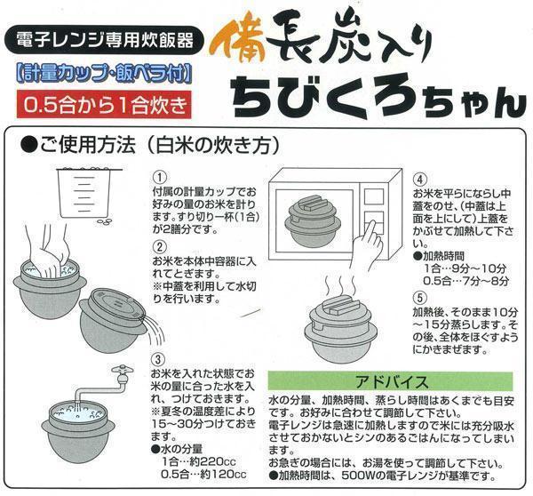 送料無料 電子レンジ専用炊飯器 備長炭入り 日本製 ちびくろちゃん 計量カップ 飯ベラ付 1合炊き/4355x3台セット/卸