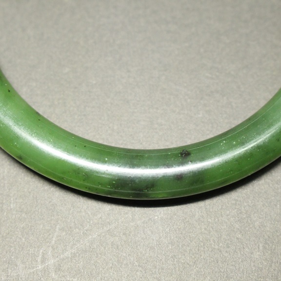 素材:翡翠?。重さ約38g。直径約7.6cm、内側直径約5.8cm、幅約8mm。ケースに入っています。その他古いもので、経年の擦れ、汚れ、傷等ございます。状態は写真をご参照頂けますようどうぞよろしくお願いいたします。