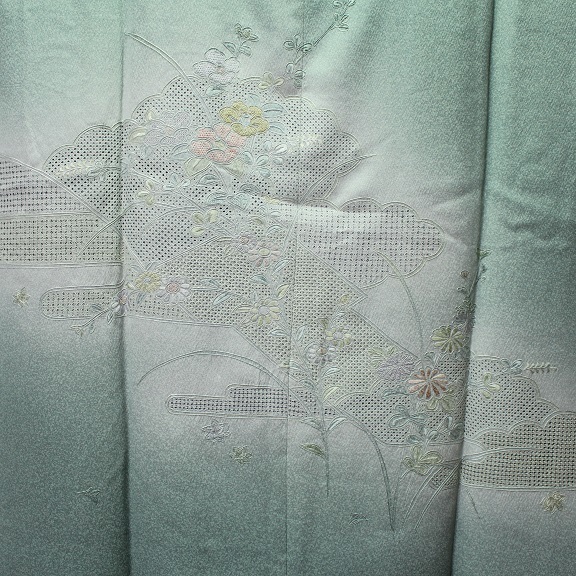 素材:正絹。着丈85.5cm、裄65.5cm、袖幅33cm、袖丈45.5cm、後幅31cm。裄約4cm伸びます。状態は写真をご参照頂けますようどうぞよろしくお願いいたします。【撮影時の照明の加減で実物の色よりも青白く写っている場合があります。】