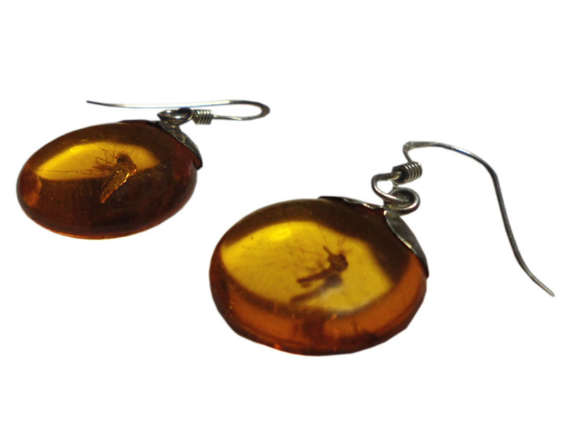 琥珀の黄色系の色合いがきれいなピアス
