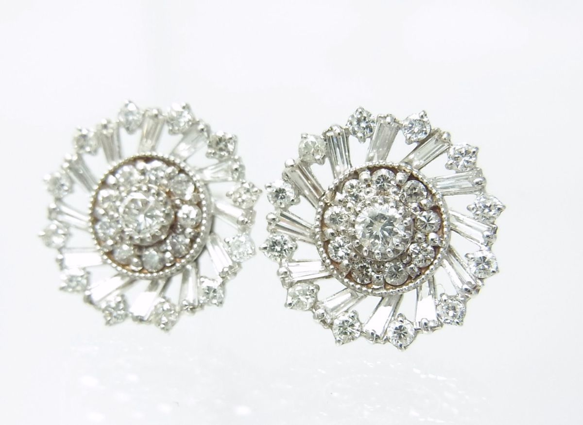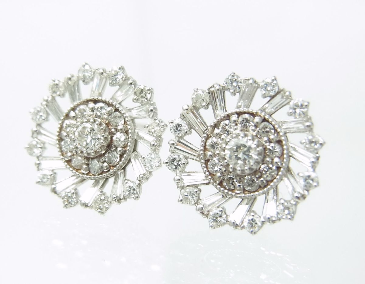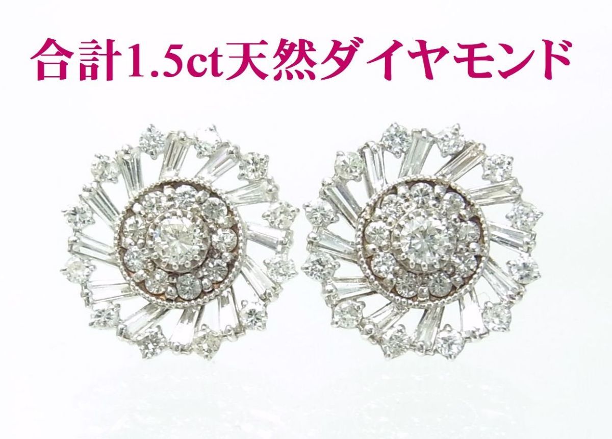 上質天然ダイヤモンド合計1.5ct 18金ホワイト製 風車形ピアス 卸価格でご奉仕/商品動画あり/送料無料