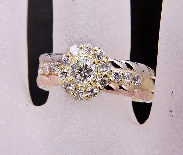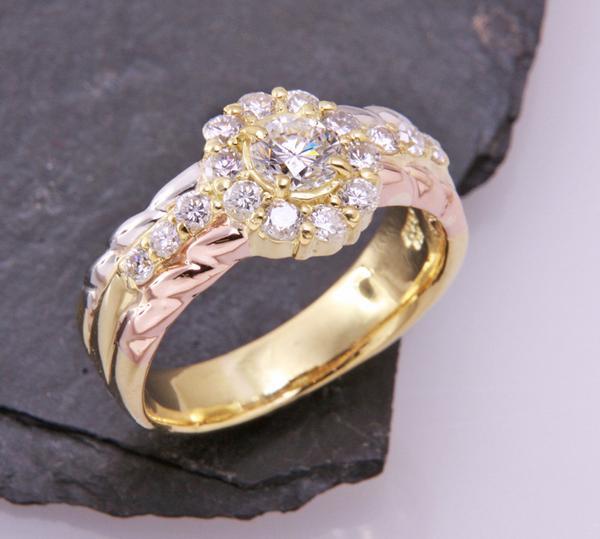 《質屋》K18★3カラーの上品なダイアモンドリング★k-4533
