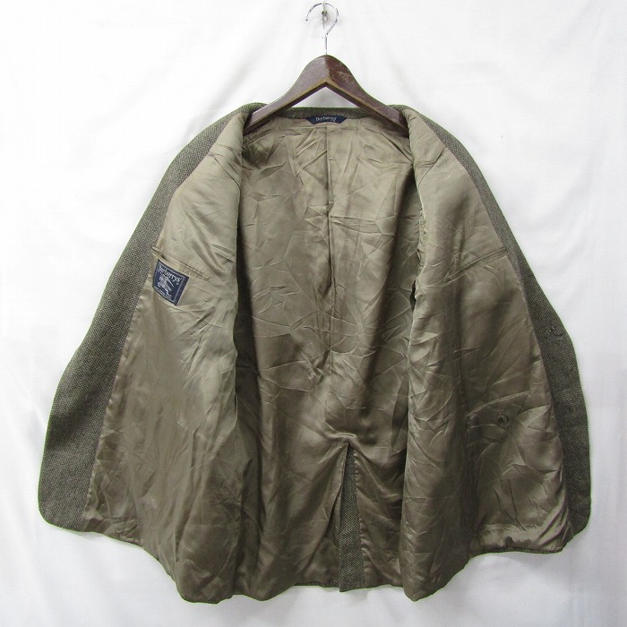 :バーバリーのテーラードジャケットです。カラーはオリーブ系、素材は恐らくウールかと思います。