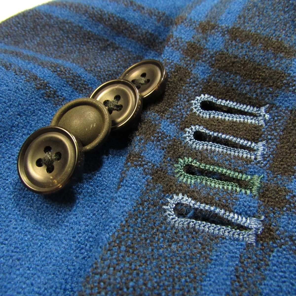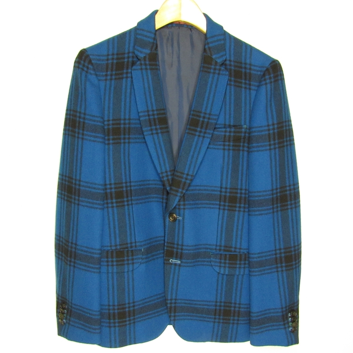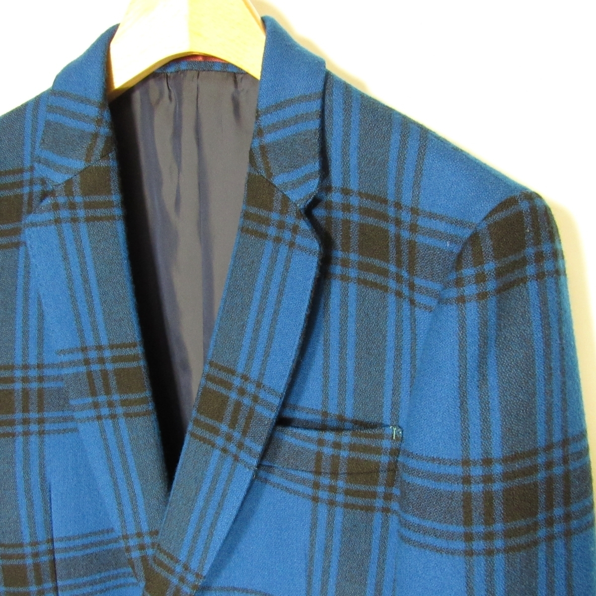 | 表地-羊毛100% / 部分使い-シルク100% / 裏地-キュプラ ブルー×ブラック / チェック柄 |