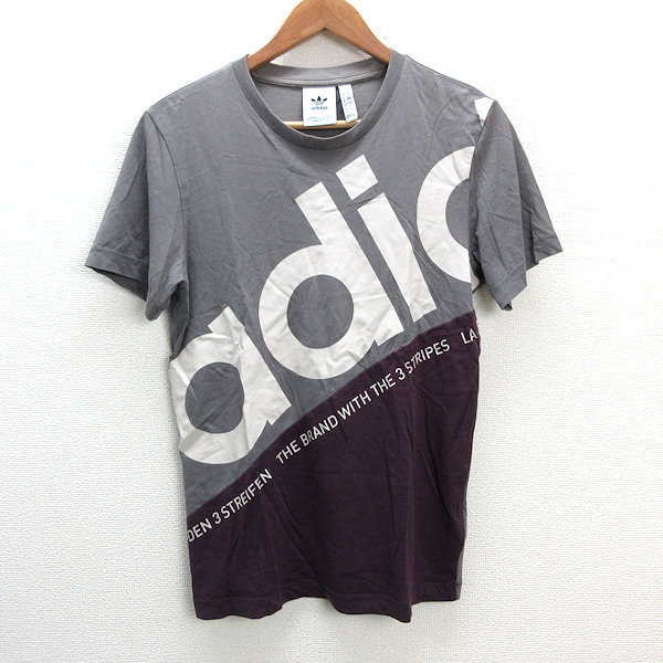 s■アディダス/adidas Pete CL Tee DU7683/ビックロゴ 半袖Tシャツ【S】灰 紫/MENS/135【中古】