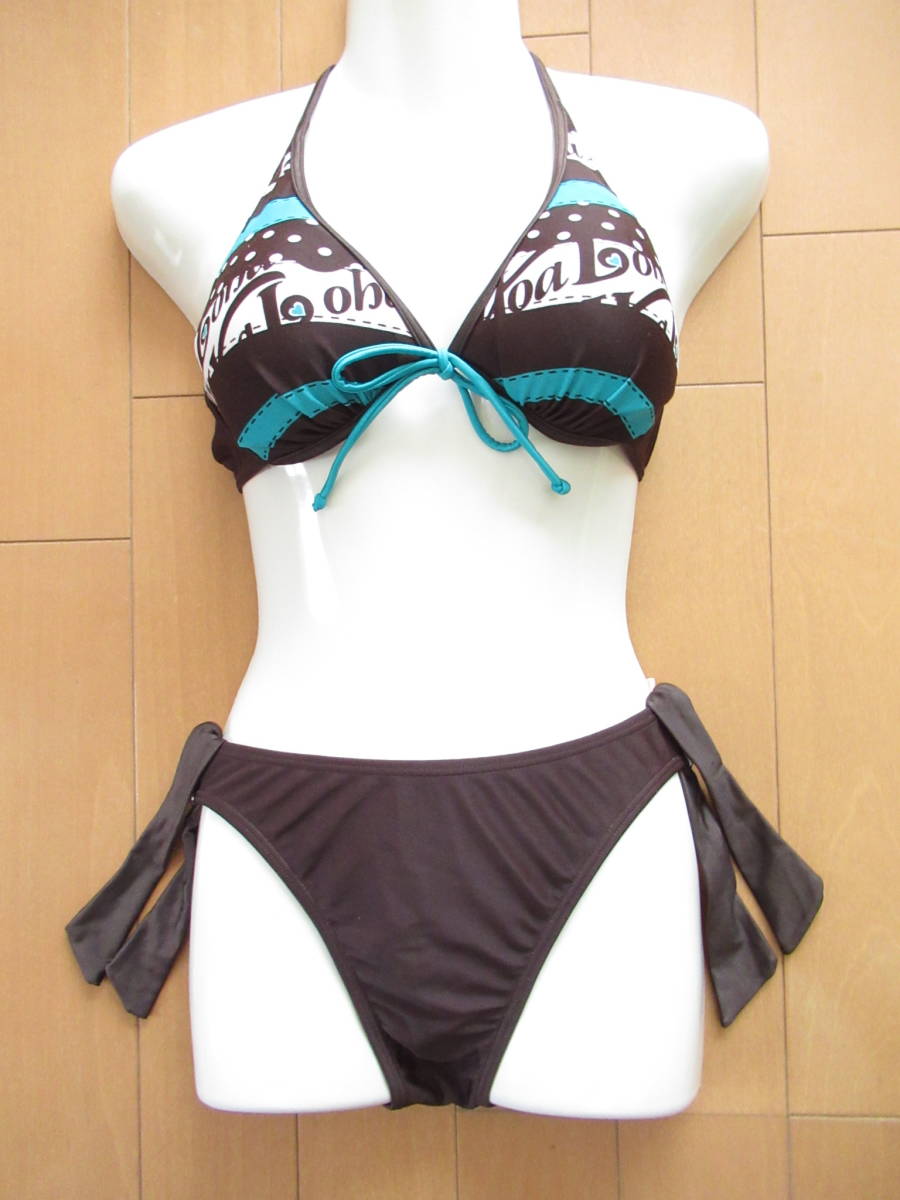 ★美品★ 水着 スイムウェア ワイヤービキニ ホルターネック W胸パッド付き レディース 9Mサイズ 上下2点セット SW5241