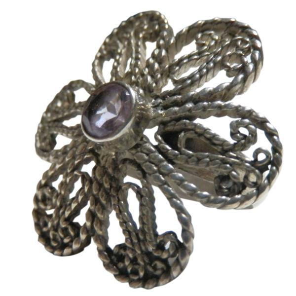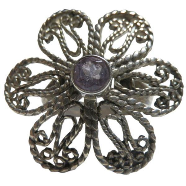 ■☆アジアン雑貨 ネパール銀職人 アメシスト・リング(AMG-21)