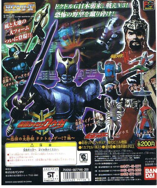 | 商品説明 | ムカデラス クウガ・ペガサスフォーム クウガ・タイタンフォーム ドクトルゲー V3スクリューキック ガマボイラー 新品です。(ミニブック付) カプセルから取り出しての発送です。 |