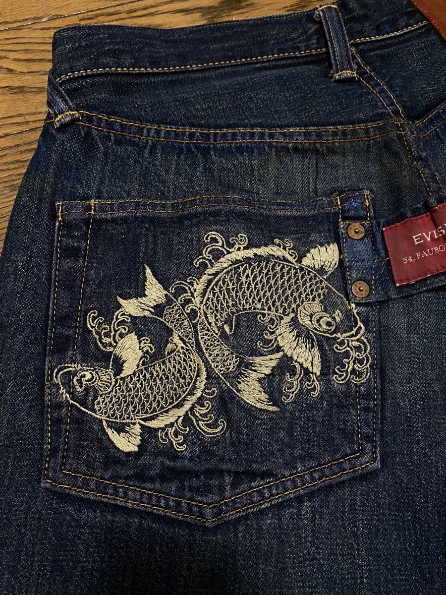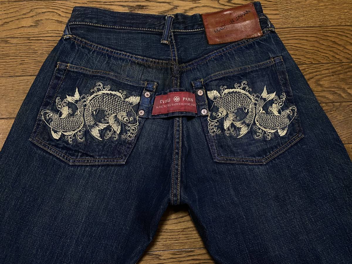 EVISU PARIS エヴィス エビス パリス LOT 2001 鯉刺繍 セルビッチ デニムパンツ 日本製 濃紺 32                 BJBB.D