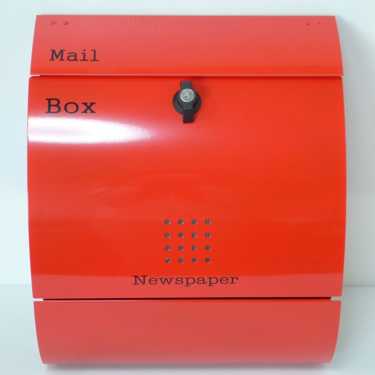郵便ポスト郵便受けおしゃれかわいい人気北欧モダンデザイン大型メールボックス 壁掛けプレミアムステンレス レッド赤色ポストpm034