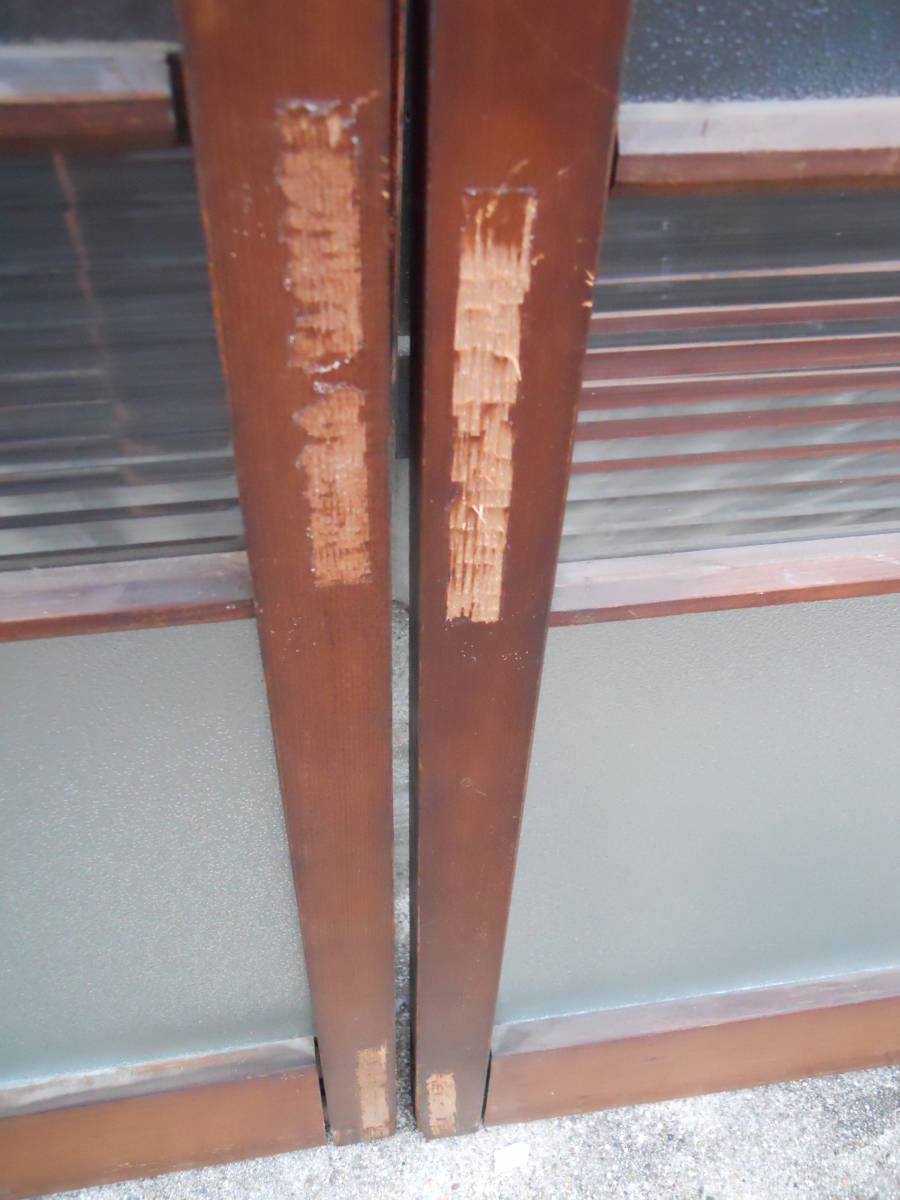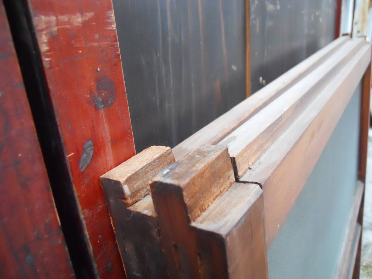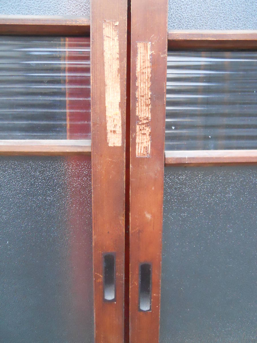 最終値下げ!M8218 古民家 シール跡 ガラス付き引き戸2枚組 高177cm横73cm厚3cm【送り先は会社 事務所 店舗限定】【個人様は西濃運輸局留】