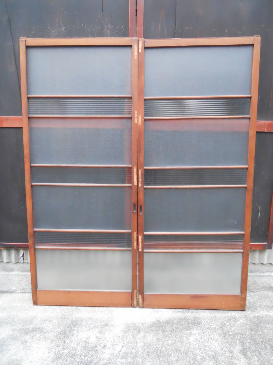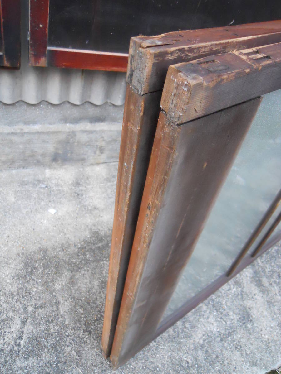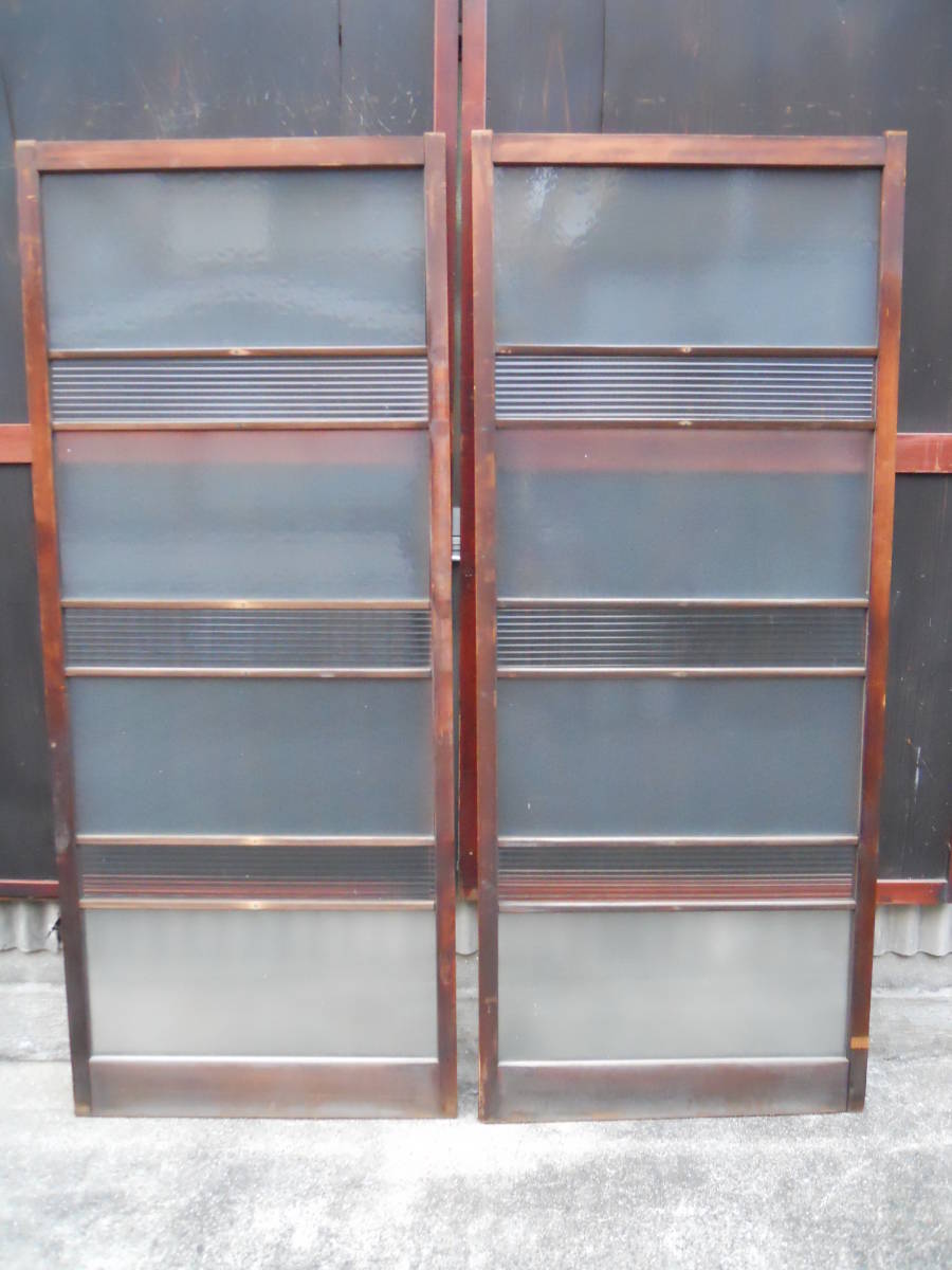 最終値下げ!M8218 古民家 ガラス付き引き戸2枚組 高177cm横73cm厚3cm(0312)【送り先は会社 事務所 店舗限定】【個人様は西濃運輸局留め】