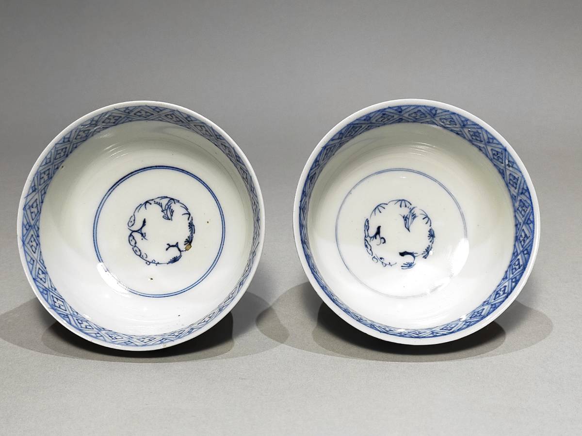 古伊万里の茶碗二客です。状態は、一客にごく小さなカケ(ホツ)が二ヶ所御座います。他には、割れやカケ等無く良品です。 画像にて確認をお願い致します。