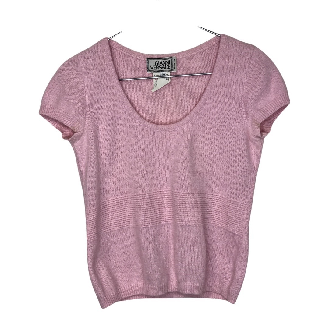 ★ジャンニヴェルサーチ GIANNIVERSACE★レディース アンゴラ ウール 半袖 ニット トップス セーター ピンク size 40 管:B:12
