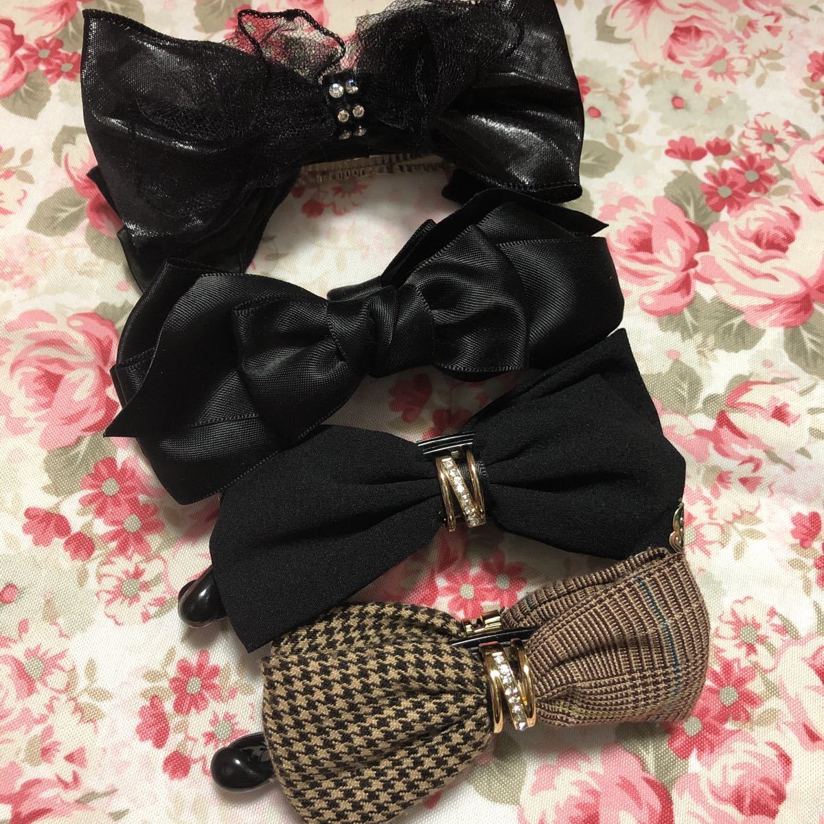 リボンバナナクリップ3本、バレッタ1個セット デイリー使い、オフィスカジュアル、ヘアアクセサリーセット
