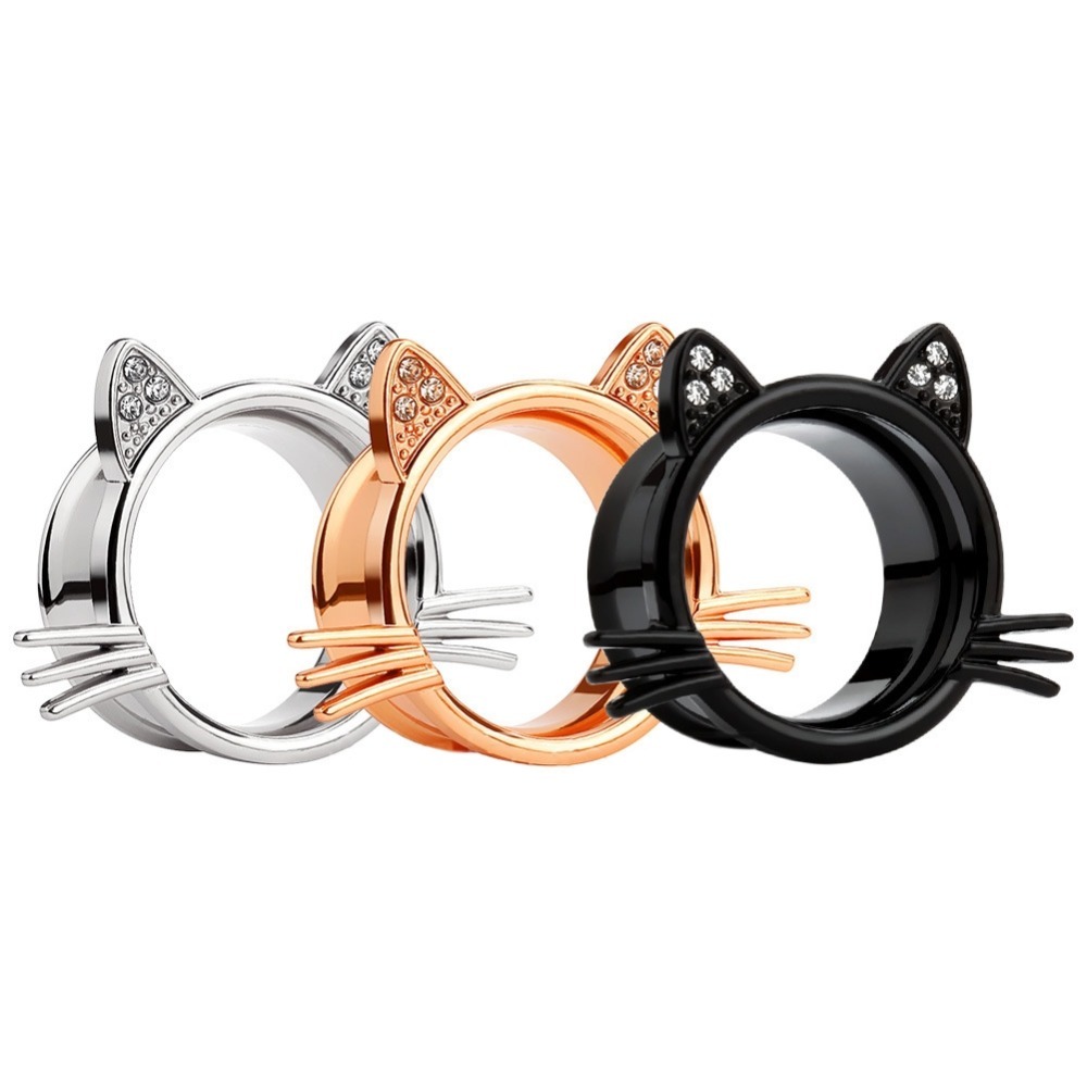 ボディピアス フレアピアス 猫 ブラック 0.8mm ワンサイズ シングル ゴスロリ 病みかわ 地雷メイク パンク ロック 新品 送料無料