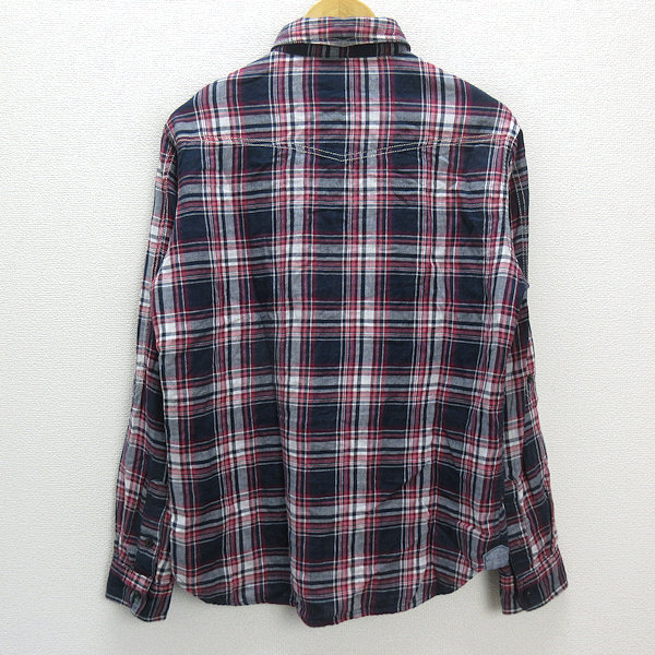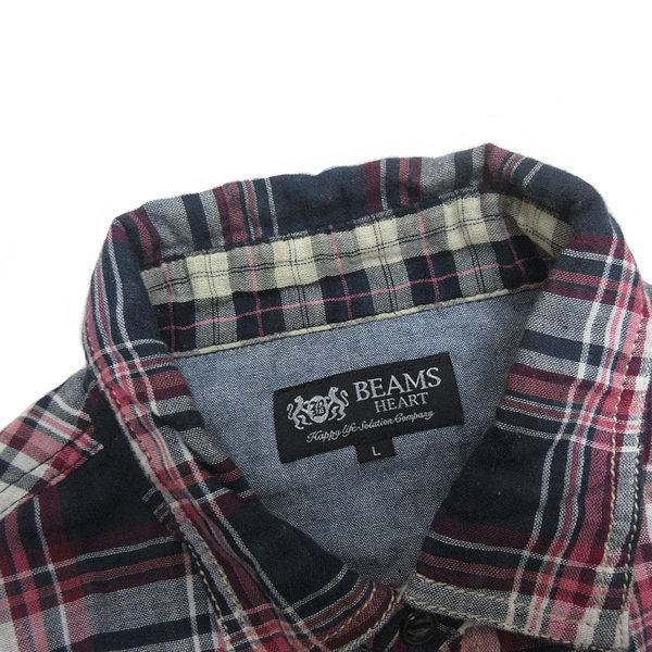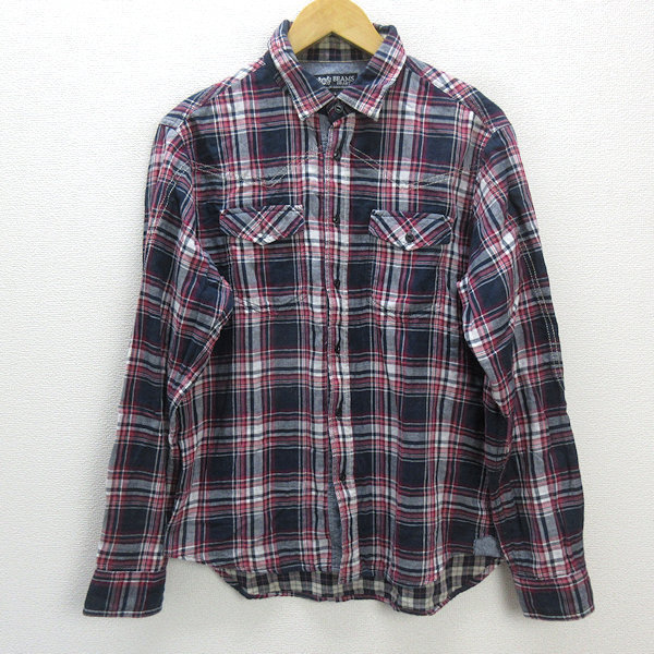 s■ビームス/BEAMS ダブルポケット マルチチェック柄 長袖シャツ【L】MENS/74【中古】