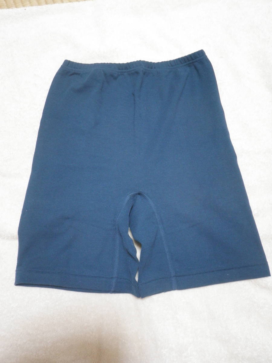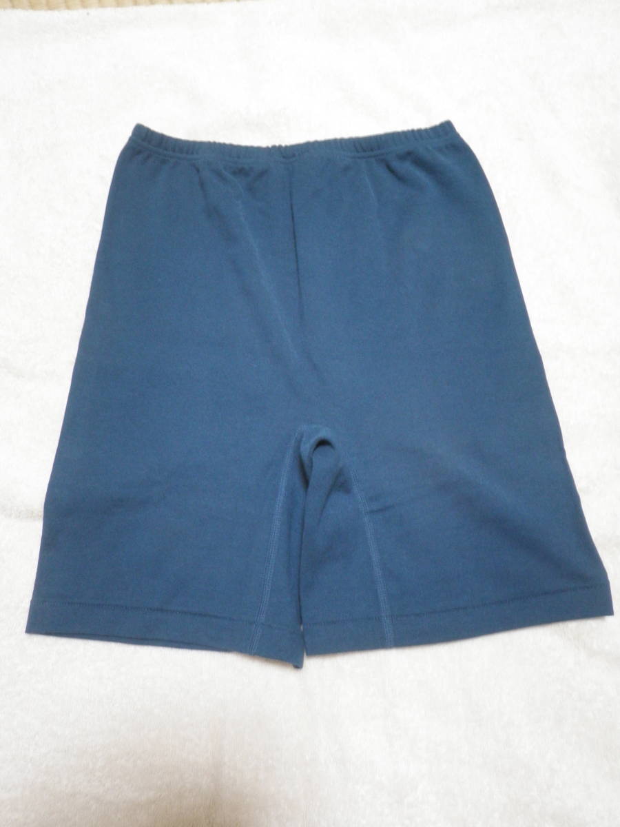 シャルレの薄手のスパッツです。股上深めの三分丈なので、防寒やスカートの下履きにピッタリです。素材は綿70%・ナイロン25%・ポリウレタン5%で、伸びが良くお肌にも優しい生地です。色は紺です。