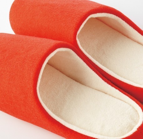 足をすっぽり包むルームシューズタイプのデザインだから、あたたかくて歩きやすいフェルト生地スリッパ。