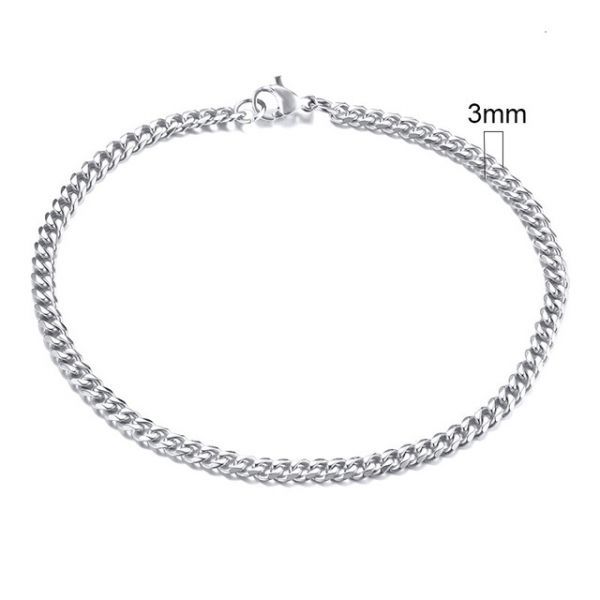 ブレスレット メンズ シンプル 3ミリメートル ステンレス 鋼 縁石 キューバ リンクチェーン ブレスレット 女性 ユニセックス #C382-6
