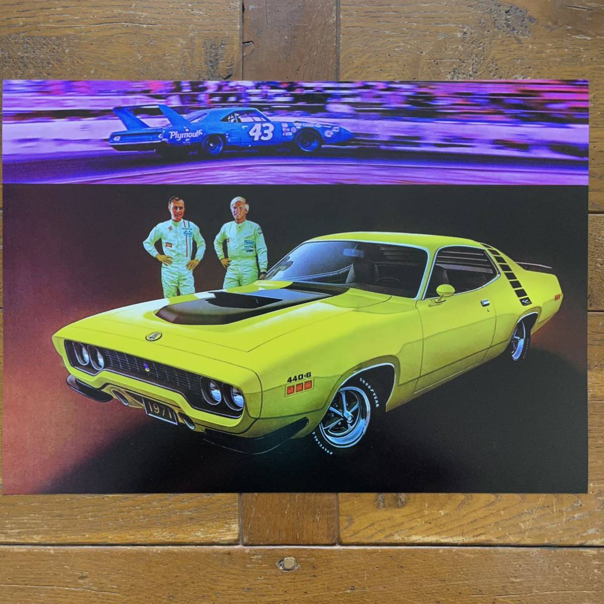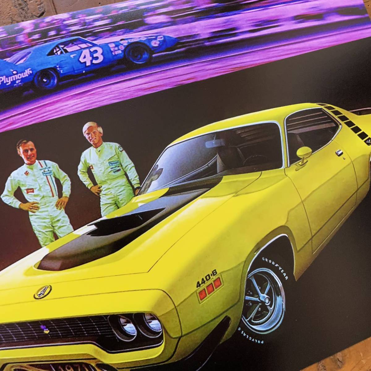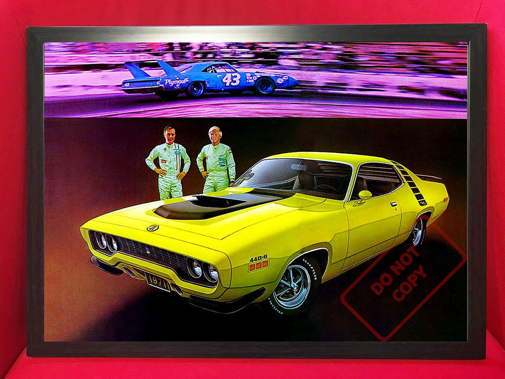 Rapid Transit System "1971 Plymouth Road Runner 440+6" USA 買付 限定数量 1971年のプリムス・ラピッド・トランジット・システムのロードランナー440+6の広告をアレンジしたリプロダクションポスターです。(当時モノではありません) ポスターサイズ:42cm × 29.7cm (額は付属しません。ポスターのみの出品です。額はA3サイズ用がピッタリです) こちらのポスターは高品質で厚みのあるアートペーパーに美しくプリントされたもので非常にハイクオリティなモノです。クラフト紙や布にプリントしたような粗い画質ではありません。存在感があり、しかも飾るのにも困らない絶妙なサイズですので、お好みのフレームに入れディスプレイするのにも最適です。また、しっかりとした厚みのあるポスターですので、そのまま無造作に壁などにピンでとめるディスプレイのスタイルもおススメです。 趣味の部屋・ガレージ・カフェ・ショップ・Bar・オフィスなどに! ※60's・70's・80'sを中心にマニアックな映画・旧車・バイク・音楽バンド関連などの様々なポスターを多数出品中ですのでチェックしてみてください! Click→映画関係ポスター Click→音楽関係ポスター Click→自動車関連ポスターA Click→自動車関連ポスターB Click→オートバイ関連ポスター Click→その他ポスター | ||