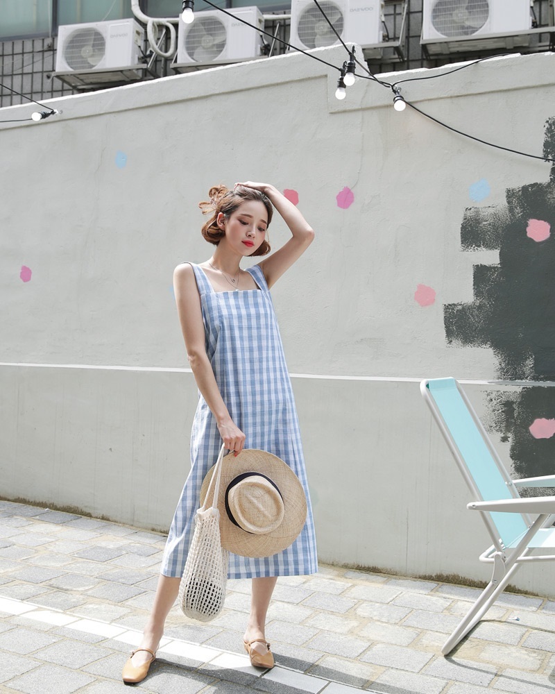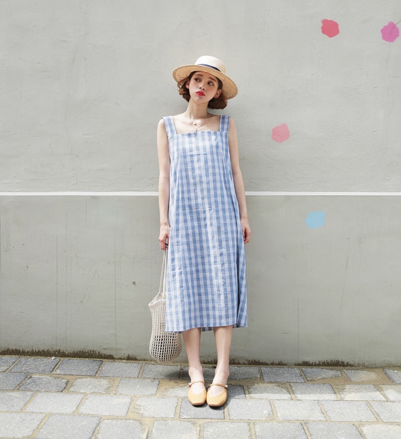 最近、こんな爽やかな水色のチェックワンピースで出てくる女優さん、たくさん見掛けますね。
