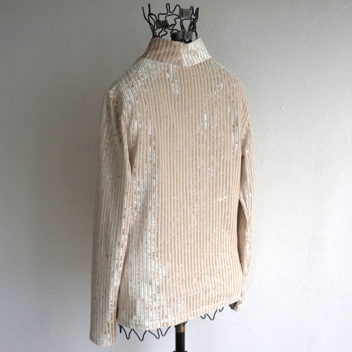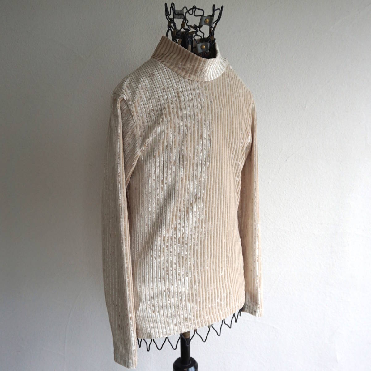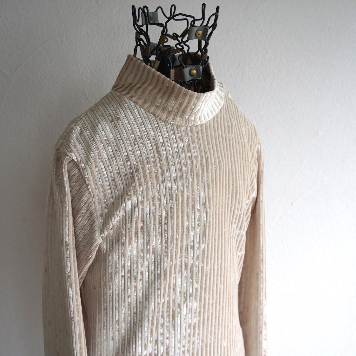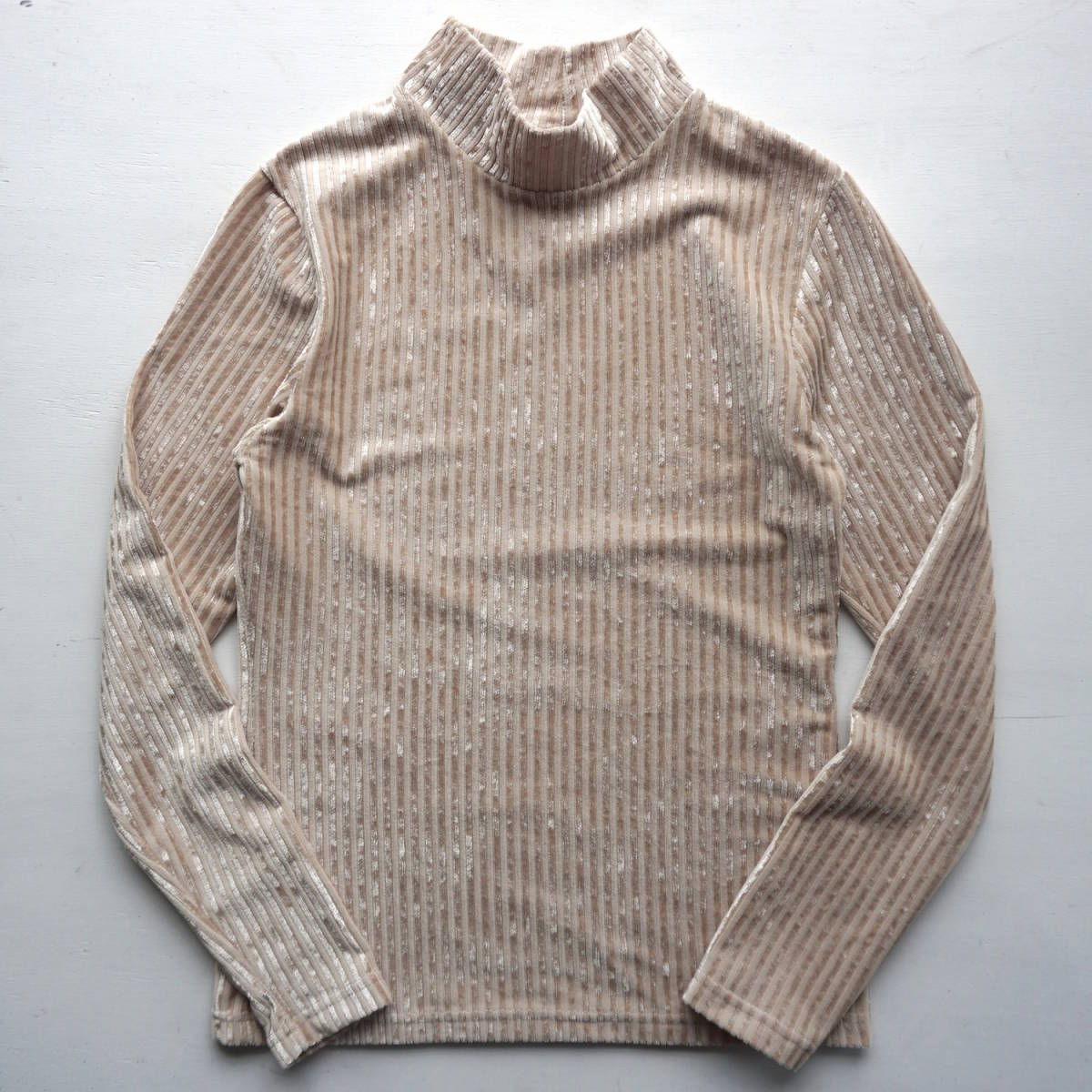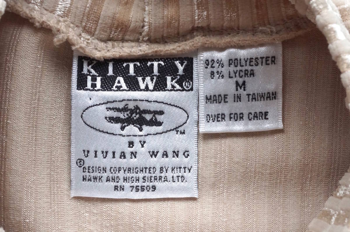 1990s ヴィンテージ KITTY HAWK by VIVIAN WANG ベロア ハイネック カットソー 立体ストライプ M ベージュ ストレッチ タイト USA 古着
