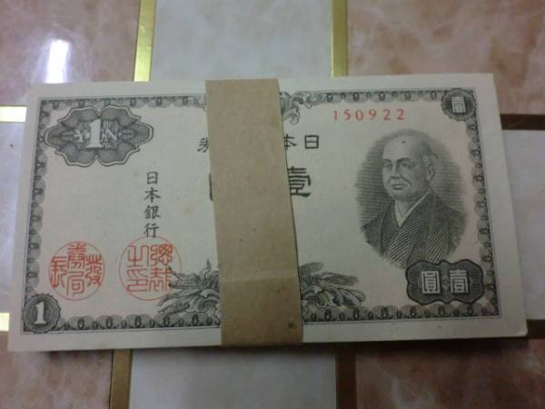 日本銀行券A号1円 二宮1円の未使用を100枚です。
