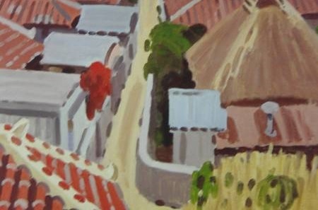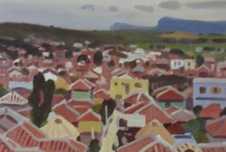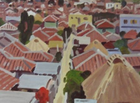 中村琢二、「沖縄の町」、希少な額装用大判画集の額装画、オーダーマット付・日本製新品額入り、送料無料