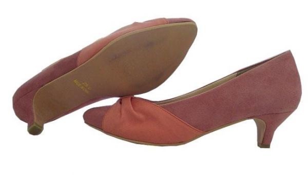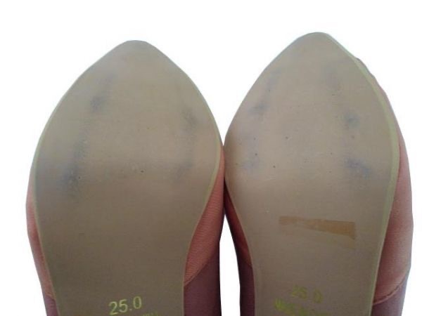 SG0919■ 新品 アーモンドトゥパンプス スエード調 ミドルヒール 片足240g 25.0cm アプリコットオレンジ/ ベージュ