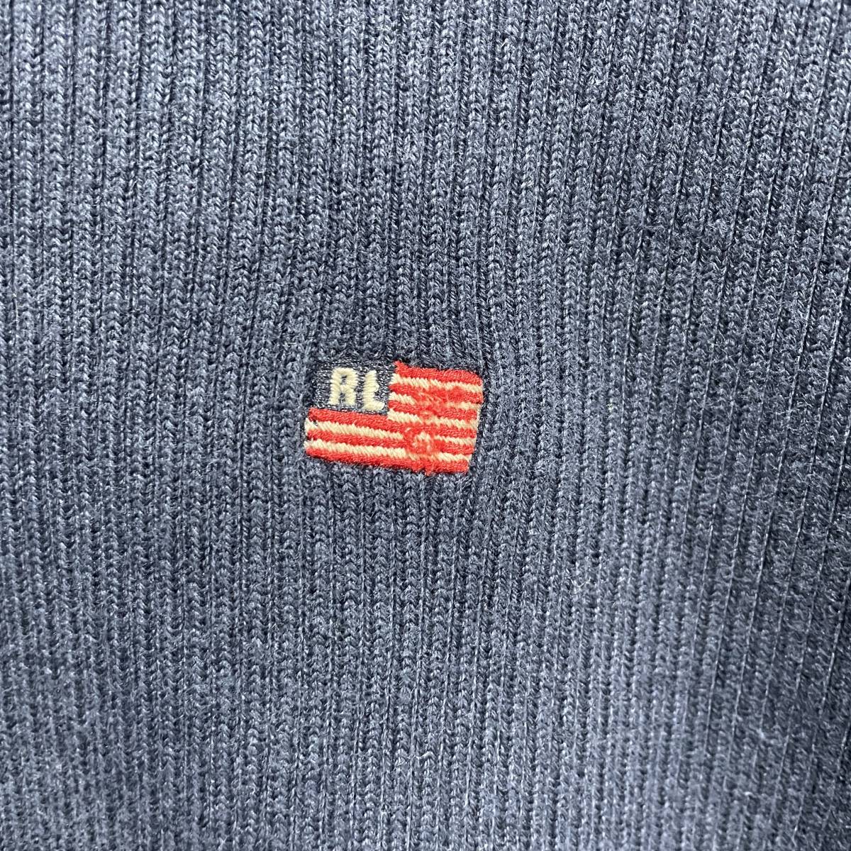 ラルローレンのリブ編みコットンスウェットになります。胸に星条旗柄が入った人気のモデルになります。縦線が入ったリブ編みですの収縮性があり着心地が良いです。一枚でもインナー使いにもオススメです。この機会に如何でしょうか。