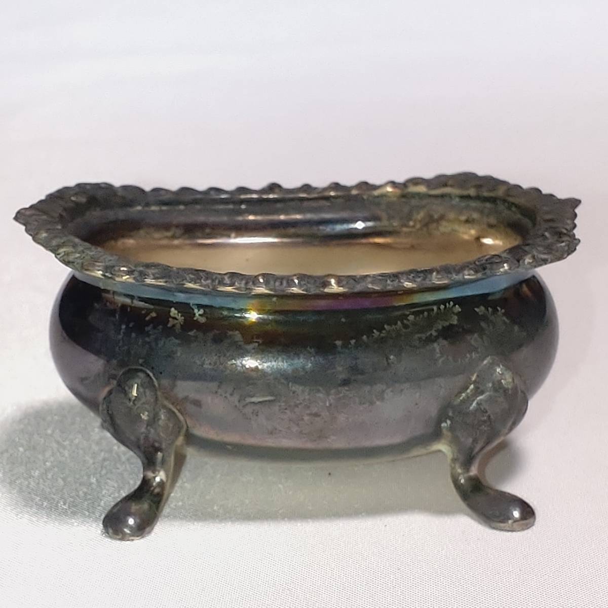 洋白銀 小型 ポット シュガーポット 蓋無し E.P.N.S JBC&SLR W6cm D4.5cm H2.8cm ニッケルシルバー ジャーマンシルバー 銀メッキ 【2818】
