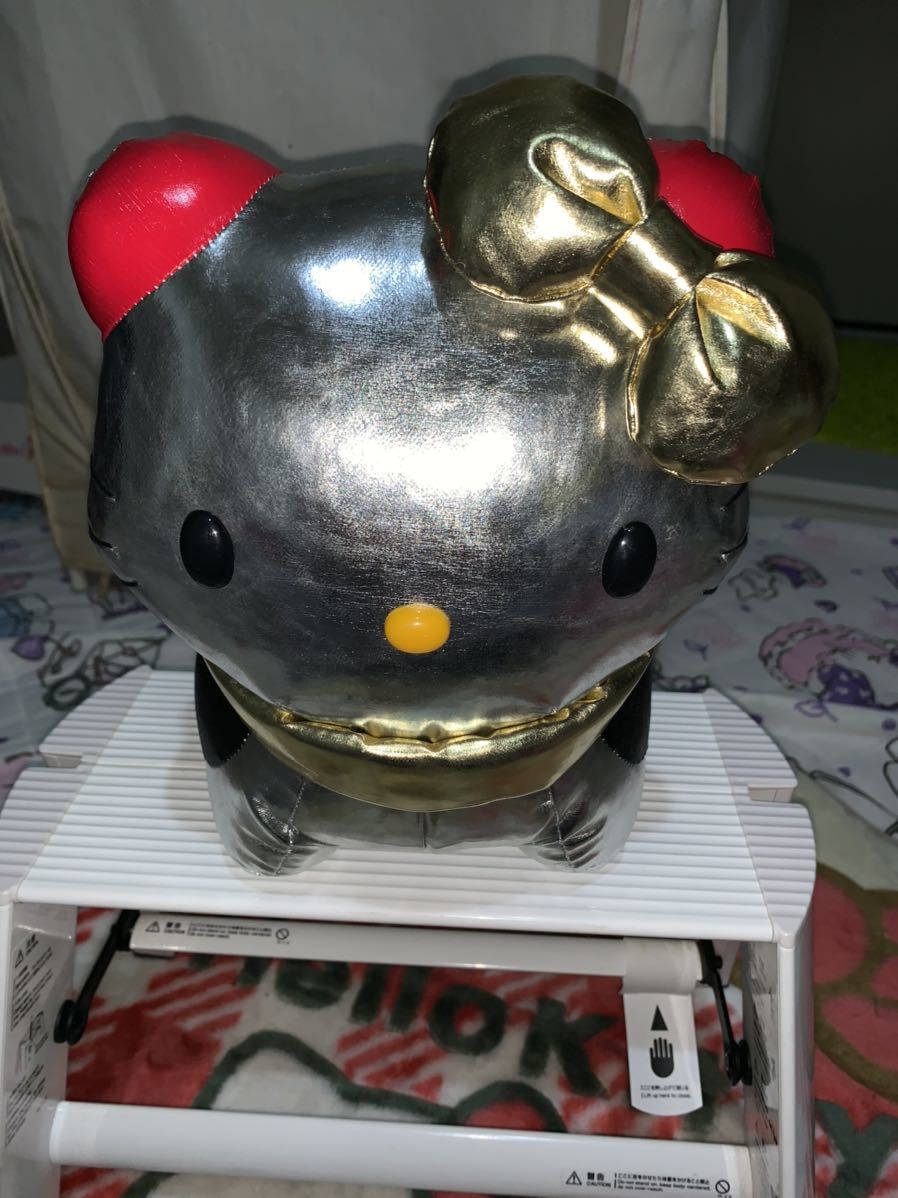 2002年に発売された、狛犬キティぬいぐるみのシルバーです。ぬいぐるみの大きさは約25×26×19cmです。購入後ナイロンに入れて飾っていました。お色違いのゴールドも出品していますので、ペアでいかがでしょうか?ノークレーム・ノーリターンでお願いします。