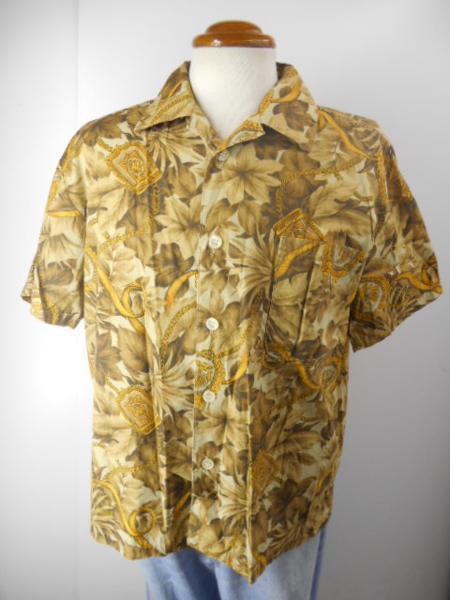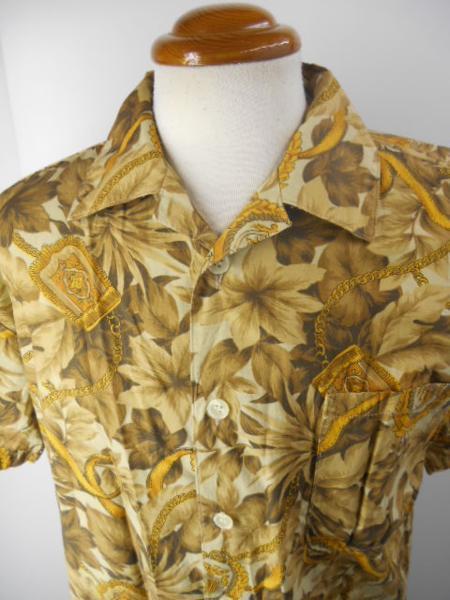 昭和レトロ 柄シャツ M 半袖 リッチ メンズ 日本製 古着 b147