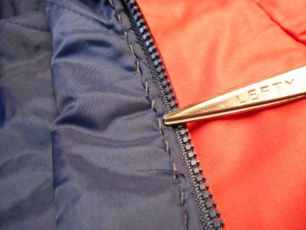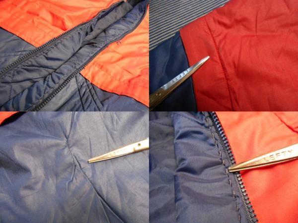 程度は悪いです、汚れ、胸に染み、後ろの下に補修跡、内側の生地がZIPに噛まないように縫っています