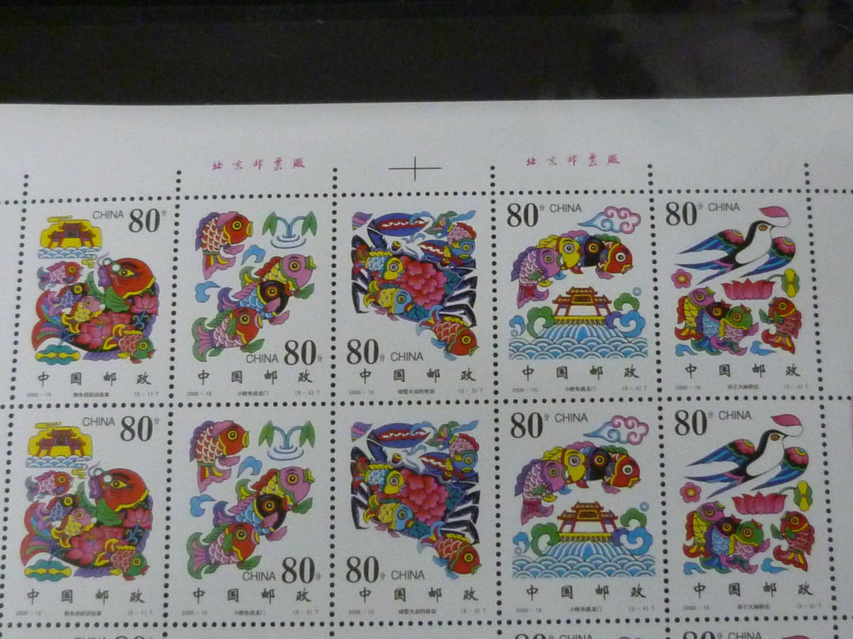 22 P 新中国切手 2000年 15T・18T 小鯉、龍門を登る・他 25面、16面シート 未使用NH、VF