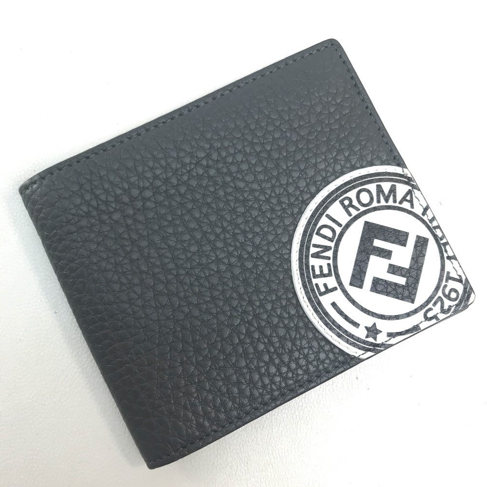 美品 FENDI フェンディ 7M0169 A4NR FFロゴスタンプ 短財布(なし)カーフ メンズ ダークホワイト