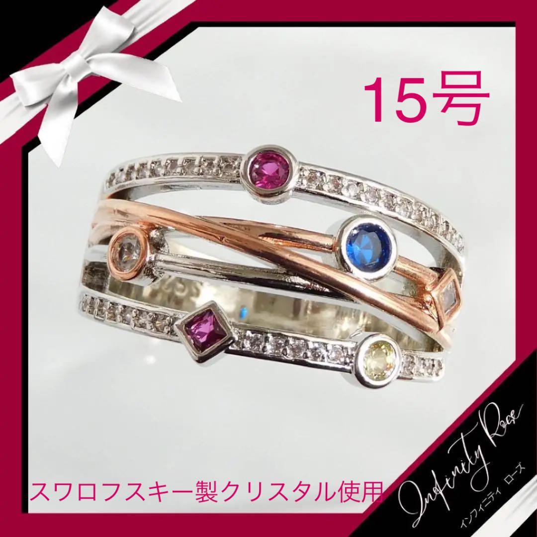 (1017)15号 ピンクゴールド×シルバー シルバー925(刻印あり)スワロフスキー製クリスタル使用