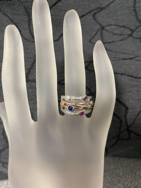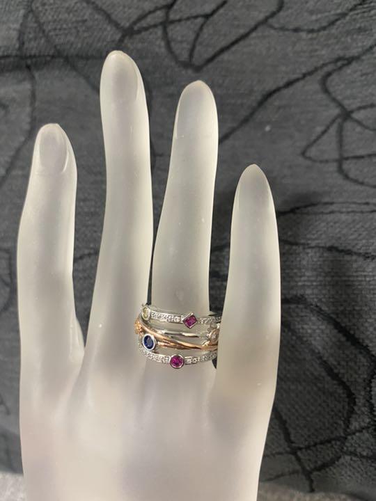 #ピンクゴールドとシルバー丸カラフルワイドリング