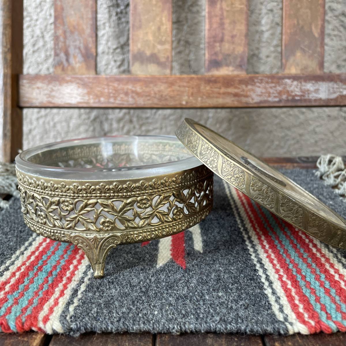希少品!40's~50's アメリカンアンティーク カメオ蓋ガラス容器 アールデコ/antiqueコスチュームジュエリー蚤の市ニューヨークparis