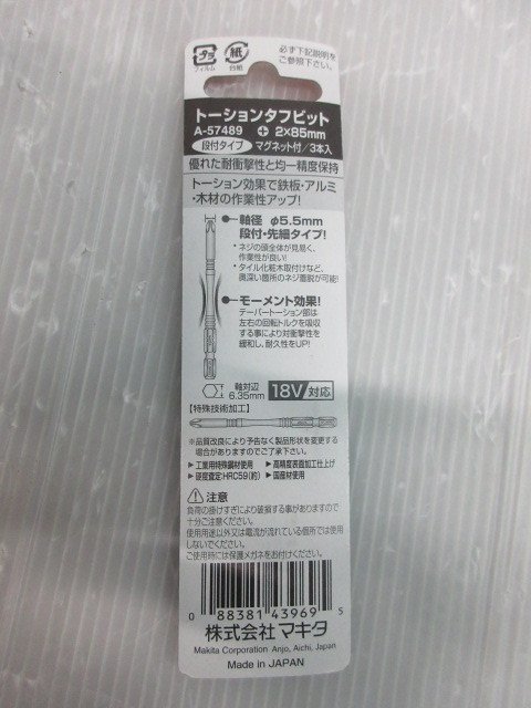 マキタ トーションタフビット 段付 先細 タイプ +2×85mm マグネット付 A-57489 |