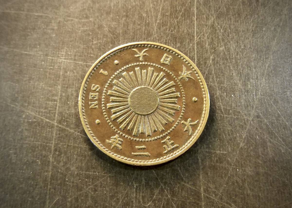 稲1銭青胴貨 大正2年 送料無料 (13098)  古銭 骨董 アンティーク 日本  硬貨 コレクション 貨幣  お宝